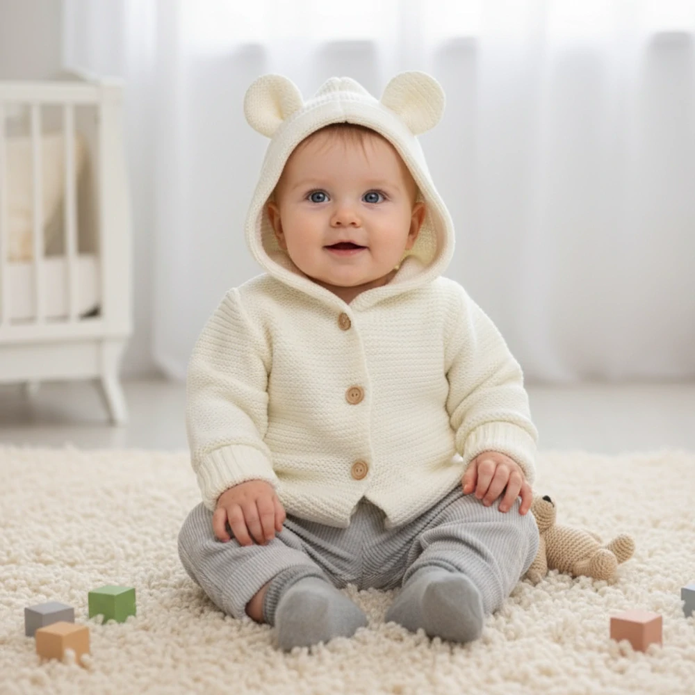 Kojenecký pletený svetřík s kapuckou smetana 68/74