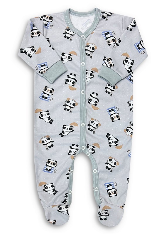 Kojenecký overálek celopropínací pro miminka Panda šedá