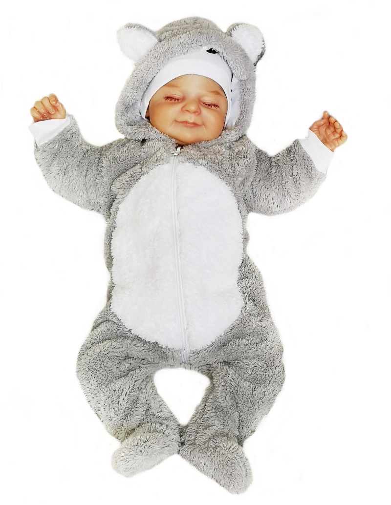 měkoučký overálek z teploučkého materiálu luna se zapínáním uprostřed na zip je celý podšitý bavlnou.