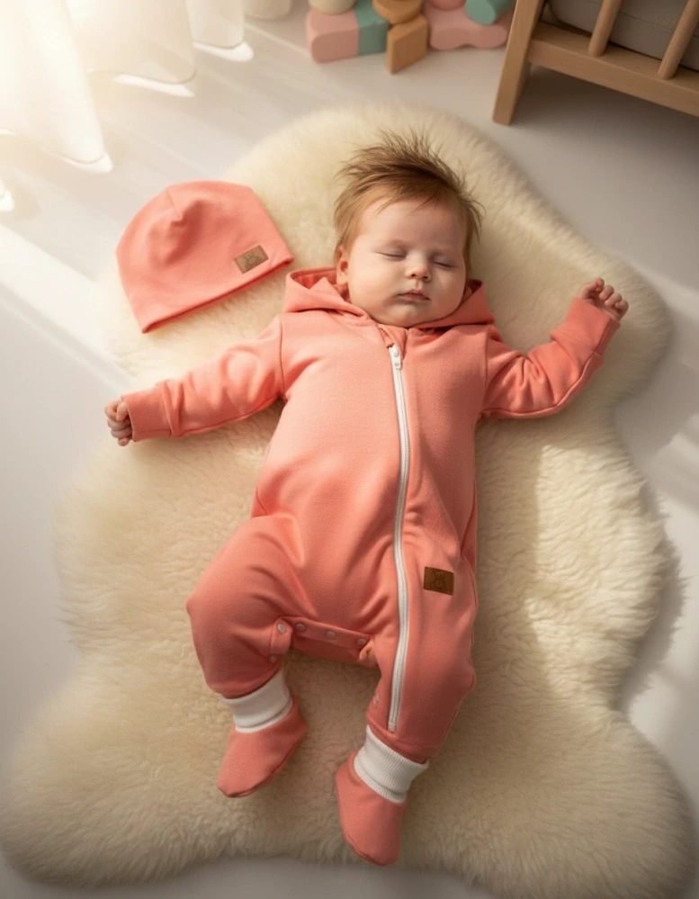 Teplákový overálek pro miminko s čepičkou a capáčky Brumlík korál