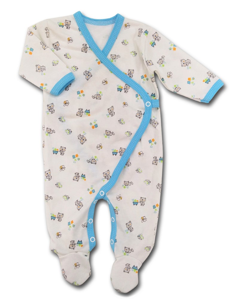 vyroben z příjemné bavlny s hřejivým vnitřním chloupkem, overálek v krásném barevném provedení na příjemném smetanovém podkladu obrázky medvídků, tyrkysové lemování. Zavinovací střih umožňuje snadné oblékání i přebalování, ideální pro novorozená miminka, je velmi pohodlný a dvojitá látka na bříšku dobře ochrání před chladem citlivé bříško miminka.