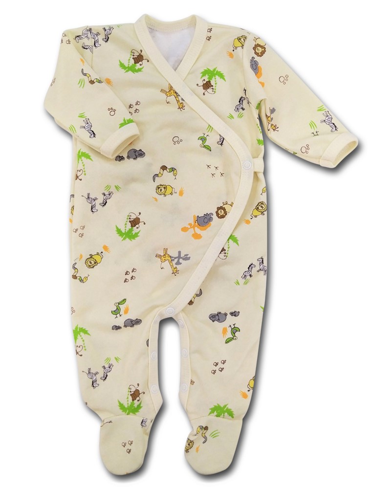 vyroben z příjemné bavlny s hřejivým vnitřním chloupkem, overálek v krásném barevném provedení na krémovém podkladu obrázky zvířátek. Zavinovací střih umožňuje snadné oblékání i přebalování, ideální pro novorozená miminka, je velmi pohodlný a dvojitá látka na bříšku dobře ochrání před chladem citlivé bříško miminka.