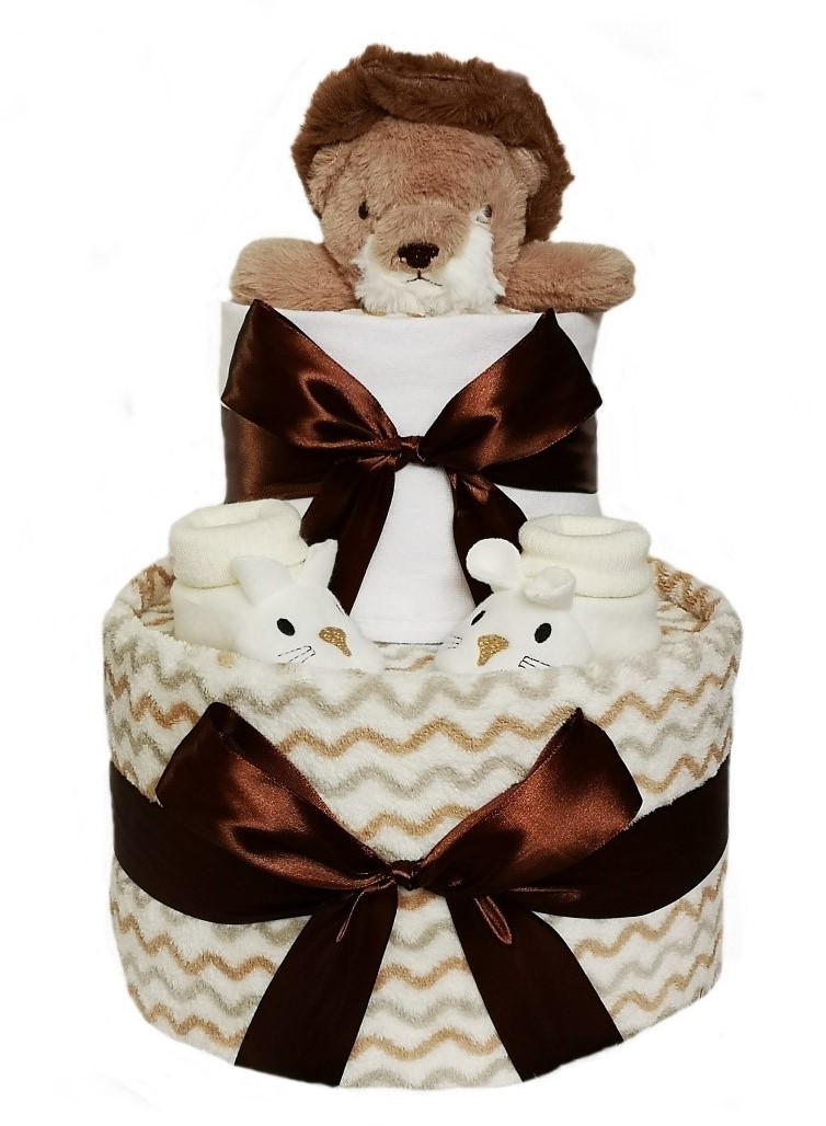Dvoupatrový plenkový dort pro novorozené miminko Lev
