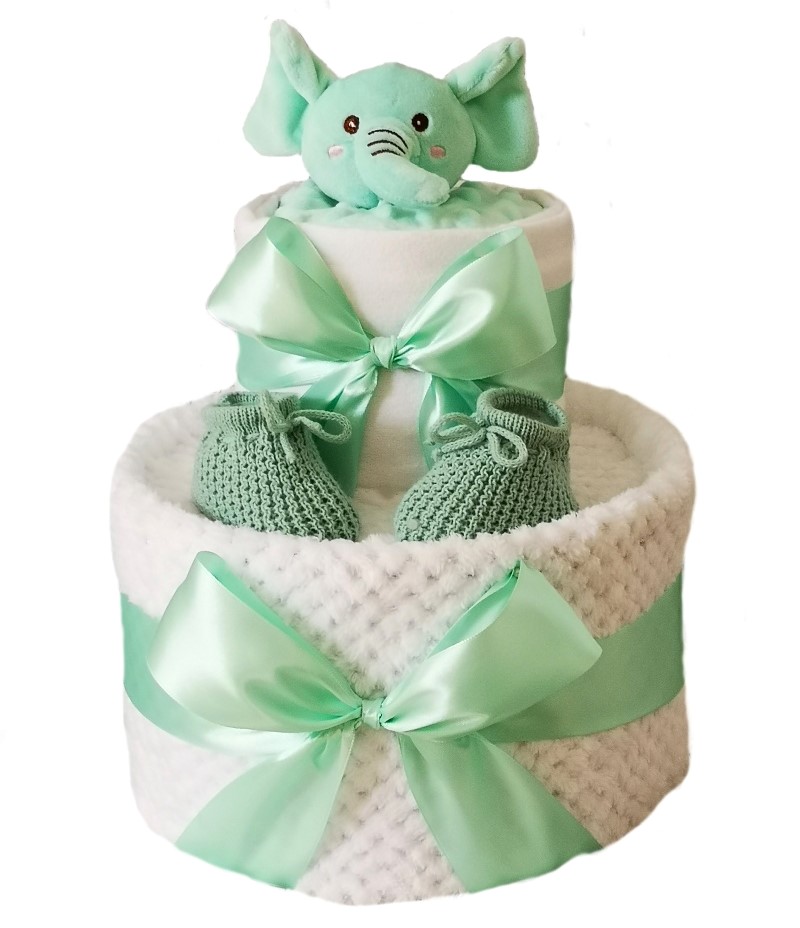Dvoupatrový plenkový dort pro novorozené miminko Sloník minky mint