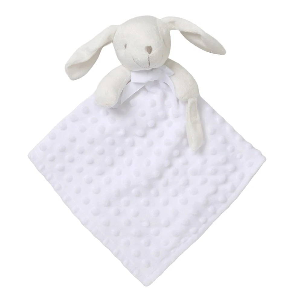Spinkáček zajíček minky s úchytem na dudlíček bílá