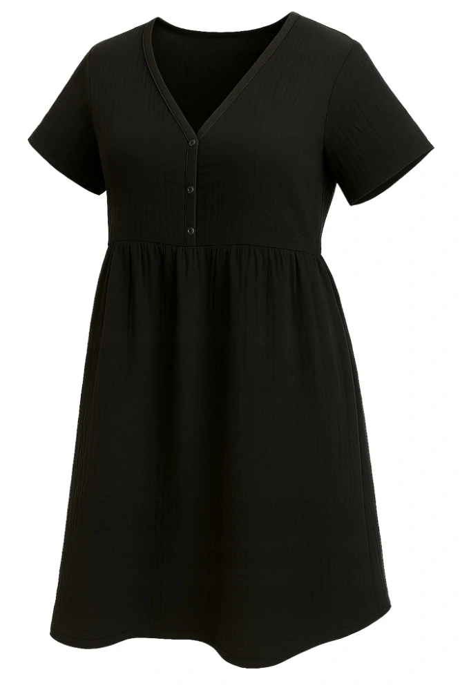 Volný pohodlný střih, praktický v těhotenství i po porodu, zapínáním na patentky umožňuje pohodlné kojení.