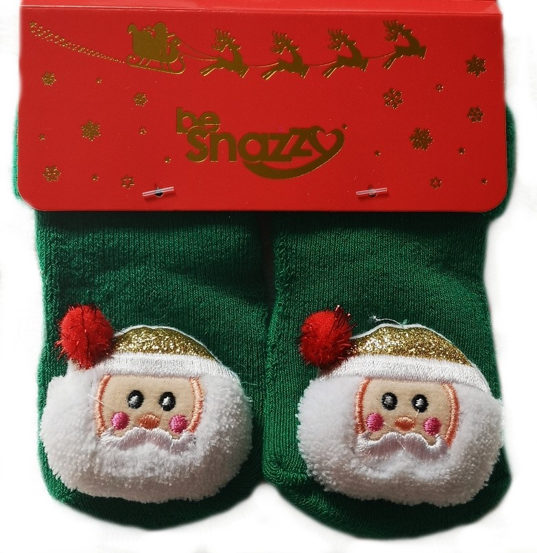 Ponožečky se velice dobře přizpůsobí nožičkám,ohrnovací lem ponožky je jemný a netlačí malou dětskou nožičku a hezky zahřeje, aplikace hlavičky Santy.